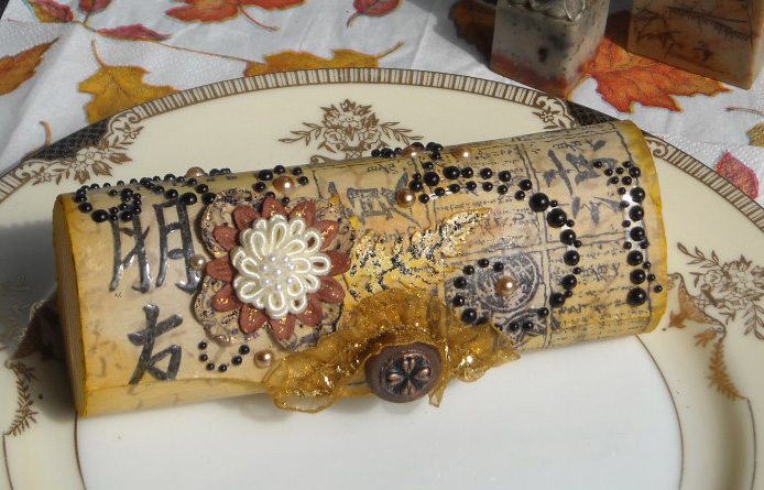 Upon leaving, the steamer trunk purse was retrieved and kept me comforted by its near presence and fullness all the way home. And, all the way home, I daydreamed about how I would like to decorate the little box for my next sojourn to a big city restaurant. That box in my waking dream has materialized into the box shown here. It’s my Chopstix Box