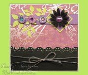 Ah, love me a romantic card! The addition of the flowers, the beautiful background papers and the lovely cord accent all come together fabulously, Charlotte! I was thinking of you today when I was reaching for some Recollections black pearls..they were perfect for my project…thanks again, my sweet!