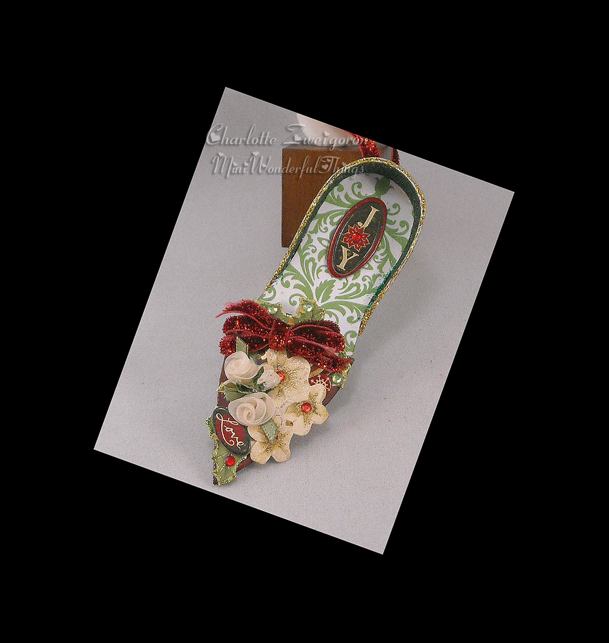 A lovely friend named Sharon called my attention to the need for more of the Mini Victorian Shoes my sister and I have been making. So, this is my recent addition to the collection of mini shoes to hang on the tree. Thank you, Sharon, for this and other great advice and support!
