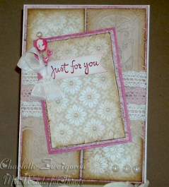 What a lovely card Charlotte. The papers and lace are gorgeous!