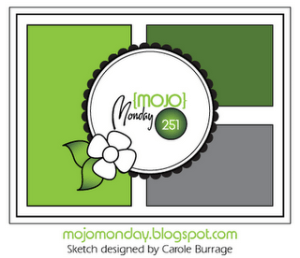 I usually combine these two challenges because they both have to be entered by Sunday evening.  I had planned to try adding another “Technique” challenge but it didn’t fit in with the Mojo Monday sketch.  Perhaps next time…