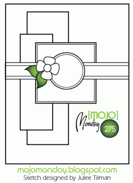 I’ve always loved doing the challenges at MOJO Monday (www.mojomonday.blogspot.com) so, with my effort to get back into the swing of things, I looked them up and this is the result.  I made the card instead of eating dinner so I have plenty of time to get this entered before the end of the challenge at 12 p.m. EST tonight.